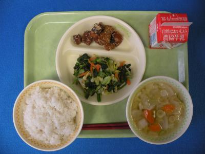 2021年5月19日 13時05分今日のメニューは、麦ごはん・三色おひたし・かつおのごま和え・白菜と大根のみそ汁・牛乳でした。学校でも家庭でも栄養バランスをしっかりと考えて食事してください。今日は2年生の教室を訪問しました。とても元気で活気があり、女子生徒もおかわりをしていました。パワーをつけ、午後の授業も頑張りましょう!!