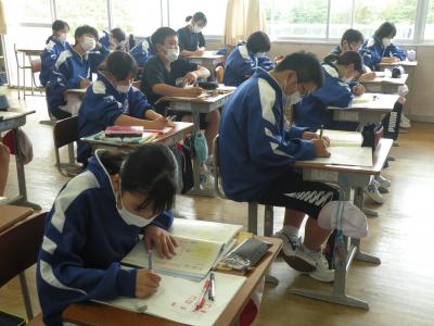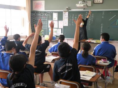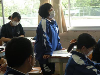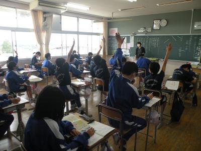 2021年5月20日 14時20分廊下を歩いているとすごく盛り上がっているクラスを発見、1年3組の国語の授業でした。先生も元気なら生徒たちはそれ以上に元気いっぱいで、積極的に手を挙げ、堂々と発言していました。入学して約2か月「こんなに成長したんだなあ~」とたくましさを感じました。すばらしい授業でした。