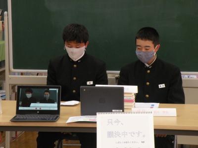 前期生徒会総会が行われました。新型コロナウイルス感染防止のため、リモート形式で行われました。生徒会役員・専門委員会委員長・部活動部長と2名の議長を中心に進められました。各教室で総会に参加している生徒たちもとても立派な態度でした。また、PCの準備や接続等ではプログラミング部の生徒たちにたいへんにお世話になりました。すばらしい総会でした。皆さん、ありがとうございました。