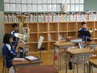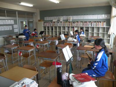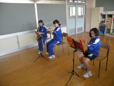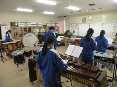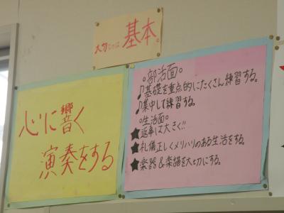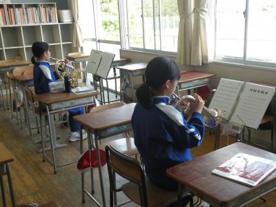 コロナ禍の中、感染防止に努めながら各パート毎に練習に取り組んでいます。校舎内にはきれいな音色が各教室より鳴り響いており、心癒やされる一時です。音楽室に掲示してある「心に響く演奏を」目指して、日々の練習に取り組んでください。