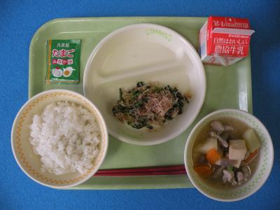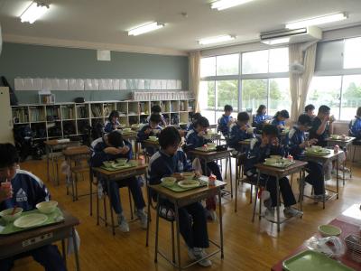 2021年5月7日 12時45分今日のメニューは、麦ごはん・鶏肉のゴマ味噌和え・ほうれん草ともやしの和え物・牛乳・ふりかけでした。今日は3年生の教室を訪問しました。準備も早く、みんな元気でした。今週も美味しい給食をご提供いただきました調理員の皆さん、ありがとうございました。
