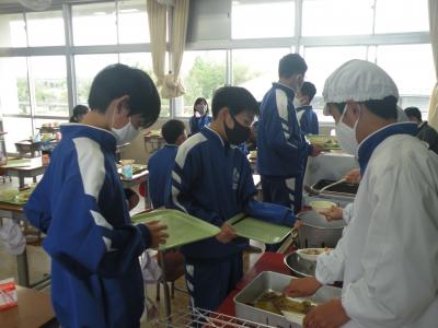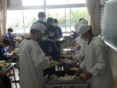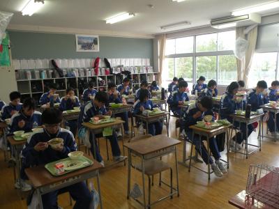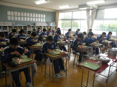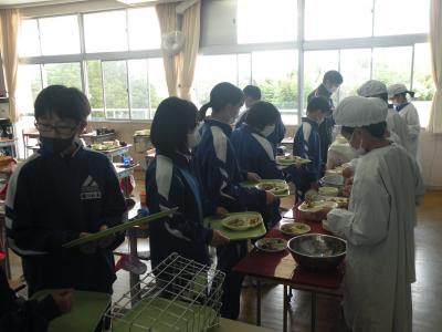 2021年5月10日 12時40分今日のメニューは、麦ごはん・豚肉の生姜焼き・じゃが芋と油揚げのみそ汁・牛乳でした。いよいよ12日(水)に中体連陸上大会が開催されます。今日の給食を力に更にパワーアップしてくれることを期待します。今日は1年生教室を訪問しました。今日も元気、みんないい笑顔で食べていました。今週も頑張りましょう!
