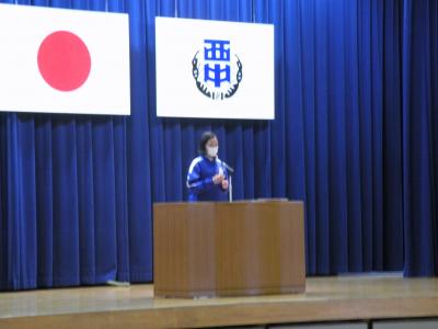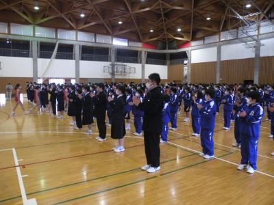 2021年5月7日 17時10分今回はコロナの影響により、応援団や全校生徒による応援はありませんでした。また、選手紹介も担当の先生から行われました。生徒を代表して生徒会長の3年女子生徒より心温まる激励のことばが送られました。あとは全生徒の熱い想いを背負い、選手は頑張るのみです。