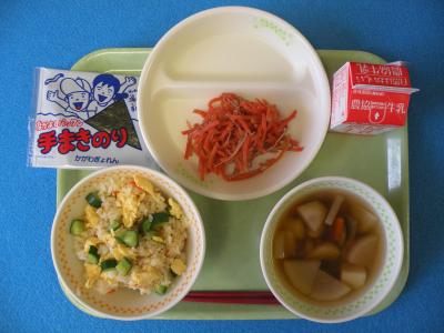 2021年4月23日 12時45分今日のメニューは、ボータン寿司(カラフル寿司)・いか人参・ざくざく・牛乳でした。今日は1年生の教室を訪問しました。準備も慣れてきて早くなってきました。クラスの雰囲気にもだいぶ慣れてきたように見えました。調理員の皆さん、今週も美味しい給食をご提供いただき、ありがとうございました。※来週の28日(水)は弁当の日となります。ご準備をよろしくお願いいたします。