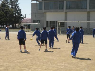 2021年4月23日 13時45分お昼休み時間は校庭に出て、運動している生徒が多く見られます。3年生はバレーボール、2年生はドッジボールをして体を動かしていました。3年生のバレーボールはなかなかの腕前でとても上手です。青空の下、運動することはたいへんに気持ちの良いことでもあります。心身共にリフレッシュできますね。