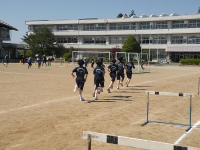 2021年4月23日 16時00分各種目ごとに分かれて練習に取り組んでいます。速く走る、遠くへ投げる・跳ぶ、高く跳ぶことを目指して、日増しに良くなってきているようです。あとは大会に向けてベストな状態で臨めるよう、けがや・病気に注意してください。