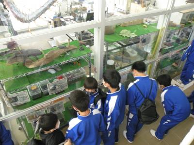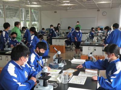2021年4月28日 12時05分1年生はムシテックワールドでの校外学習に取り組んでいます。サイエンスショーを見たり、顕微鏡を使っての水中生物の観察を行っていました。生徒たち、新たな発見には感動の声をあげるなど表情豊かに学習に励んでいました。なかには展示されている昆虫類にとても興味のある生徒も見られました。たくさん学習してきてくださいね!