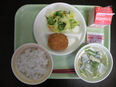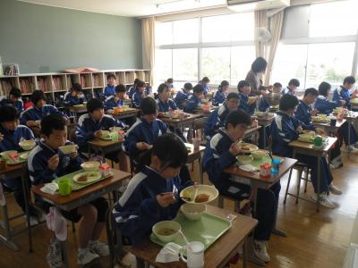 2021年4月16日 13時00分今日のメニューは、麦ごはん・メンチカツ・昆布とキャベツの浅漬け・大根と油揚げのみそ汁・牛乳・ソースでした。今日は1年生の教室と放送室を訪問させていただきました。1年生も準備が早くなり、食欲も旺盛です。好き嫌いせず、たくさん食べて大きく成長してくださいね。放送員の爽やかな声がまた食欲を増しています。今日も美味しい給食をありがとうございました。