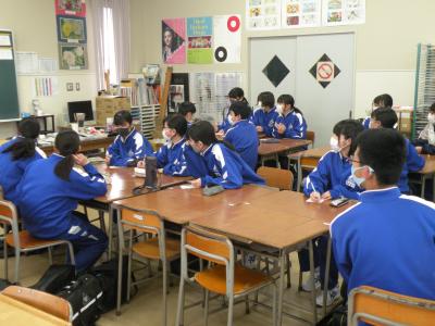 2021年4月16日 16時00分今日は美術部とAIプログラミング部を訪問しました。まずは人数が多いことに驚きを感じました。しかし、みんな一生懸命に取り組んでいる姿はたいへんに立派でした。これから各種コンクールや大会もあるかと思います。計画的に活動を進め、運動部以上に頑張ってもらいたいと思います。