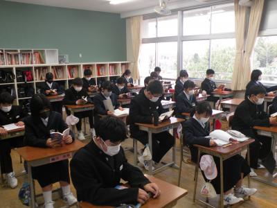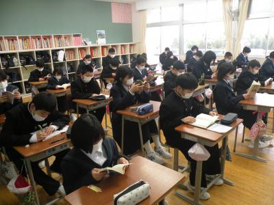 2021年4月19日 09時00分1年生も入学して3週目を迎えました。少しは中学校生活に慣れたでしょうか。授業や部活動と疲れもたまっているかと思いますが、うまく気分転換しながら、今週も乗り切りましょうね!どのクラスもきちんと朝自習(読書)に取り組んでいました。朝のあいさつもすばらしいです!