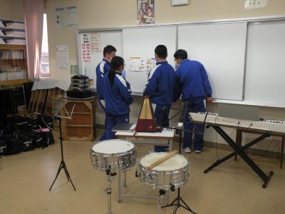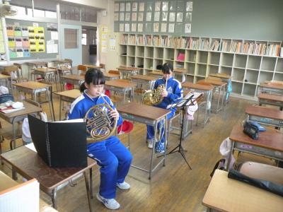 2021年4月19日 18時25分校舎内にホルンやフルート、トロンボーンなど素敵な音色が響いていました。顧問の先生を中心に、1年生も新たに加わりとても良い雰囲気の中で練習が行われていました。楽器が弾ける・吹けるなどということは、すばらしいことであり、とてもうらやましく思います。各種コンクールに向けて部員が一致団結して頑張ってほしいと思います。応援してますね!