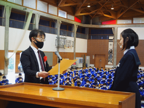 今日の賞状の伝達式では、仙台国税局徴収部長 門脇瞬有様、福島県 県中地方振興局次長 菅野俊彦様、須賀川税務署長 渡部史郎様、本校父母と教師の会会長 星美江様のご臨席いただきました。