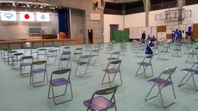 ※保護者の方の入場を遠慮いただいた分、前後左右、最大限の距離を取って椅子を並べることにしました。
