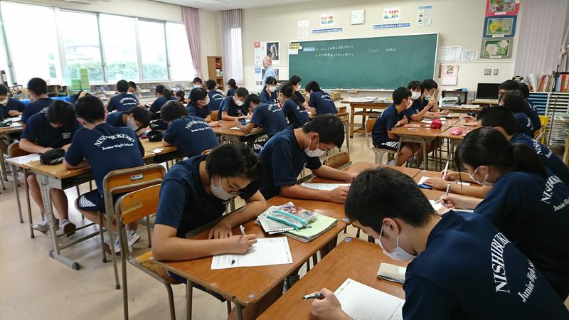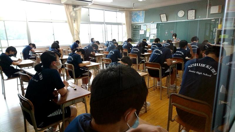 2020年8月31日 14時15分最後の力を振り絞って最終科目のテストに取り組んでいます。今日、できなかったところ、わからなかったところを重点的に復習しましょう。
