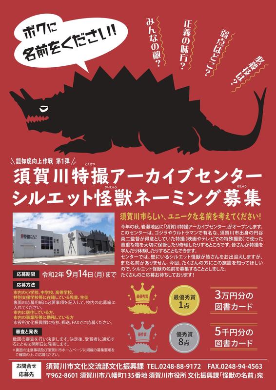 2020年9月2日 09時00分11月3日開館予定の「須賀川特撮アーカイブセンター」の「シルエット怪獣ネーミング募集」に応えて、文化祭の壁画デザインづくりとともに全校生で取り組んでいます。保護者の皆様も応募できますので是非チャレンジしてみてください。