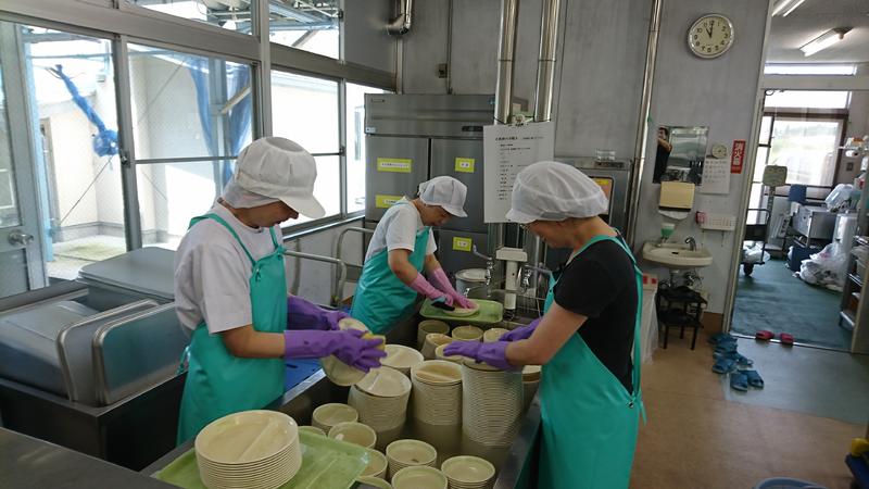 2020年8月4日 11時30分 給食室も食器をピカピカに磨き上げて2学期に向け準備しています。