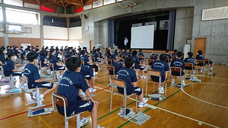 2020年7月21日 15時30分 福島民報社主催の「みんぽう出前塾」が1年生を対象に開かれました。これは、新聞に親しむことで社会への興味や関心を広げ、自分で考え判断する力や語彙力を身に付けることを目的として実施されたものです。福島民報社の編集者の方による、効果的な新聞の読み方や学習への生かし方などについての講座が行われました。