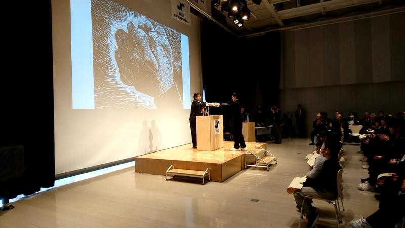 市内小・中学校版画展として毎年市内小中学生から作品が寄せられ、2655点の中から、本校関係では、最優秀賞(教育長賞・青年部会長賞)に2年の車田ダイクスさんが選ばれ、上位入選作とともに作品が展示されています。