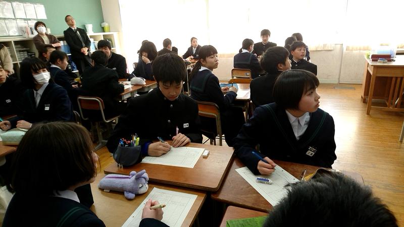 10日(月)3年実力テスト 学校司書・ALT(3の2)来校