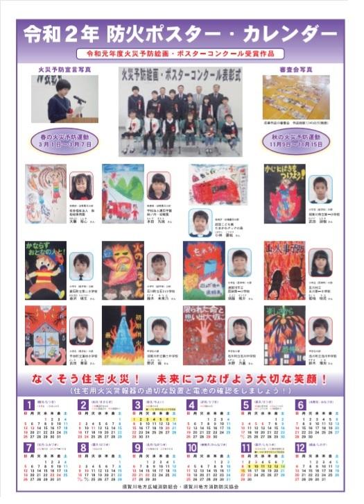 2019年12月26日 10時30分「令和元年度火災予防絵画・ポスターコンクール」の優秀賞12点(本校生徒1名を含む)を掲載した「令和2年防火ポスター・カレンダーが、須賀川地方広域消防組合等の3団体で作成されました。