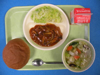 2学期最後の給食は「煮込みハンバーグ」でした!