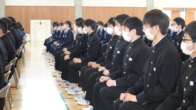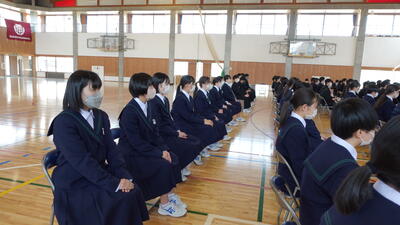 2023年3月8日 18時10分同窓会長様をお招きし、卒業生の同窓会入会式を行いました。卒業生が加わると同窓生は6,968名となります。すばらしい先輩方を見習い、卒業生が今後益々活躍してくれることを祈念いたします。お忙しい中、同窓会長様ありがとうございました。そして、これからもよろしくお願いいたします。
