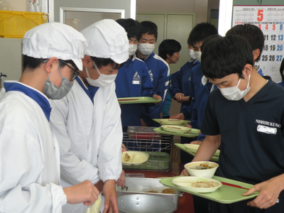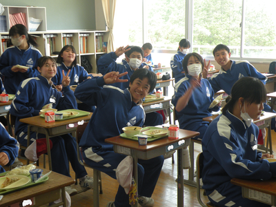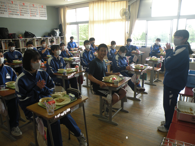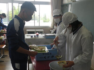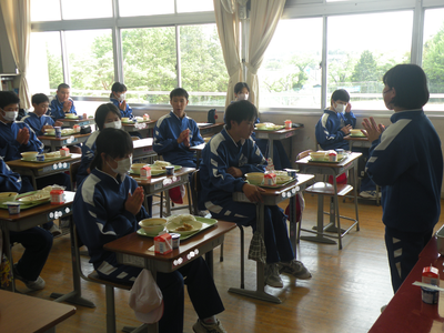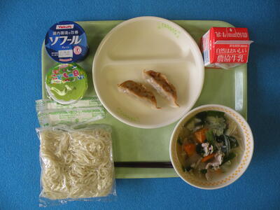 2023年5月16日 13時25分今日のメニューは、塩ラーメン・餃子(2個)・ヨーグルト・プリン(柏餅味)牛乳でした。ラーメンもなかなかの味でとても美味しかったです。今日は3年生の教室を訪問しました。とてもフレンドリーな関係です!※明日・明後日は県中地区陸上大会のため、給食がありません。お弁当の準備をよろしくお願いいたします。
