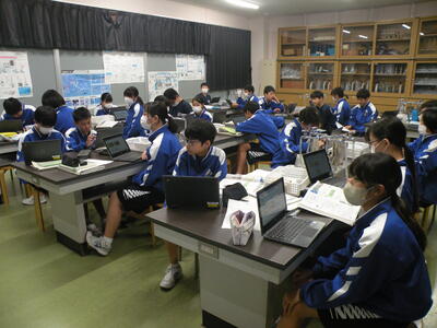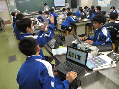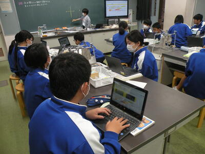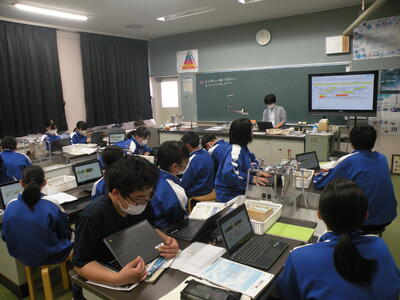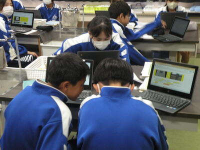 2023年11月7日 11時20分タブレットにデータを入れ、実験の結果について処理していました。どのグループも互いに確認し合いながら、進めることができていました。1年生でもきちんと使いこなしていることが、まずはすごいです!