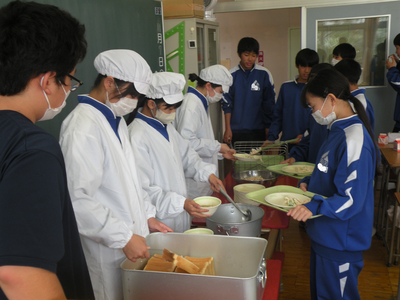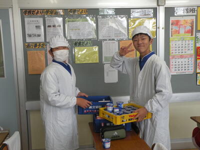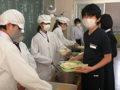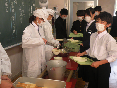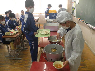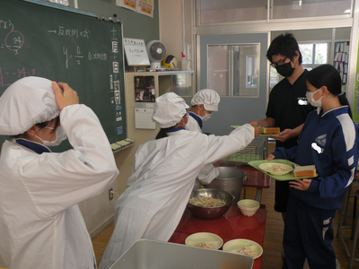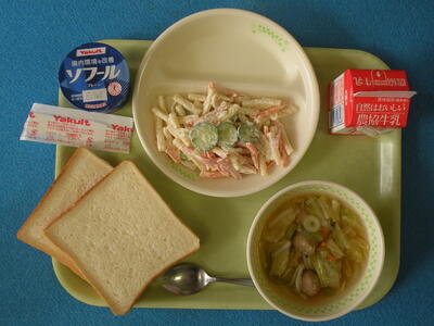 2023年11月7日 12時45分今日のメニューは、食パン・肉団子スープ・マカロニサラダ・ヨーグルト・牛乳でした。今日は1年生の教室を訪問しました。