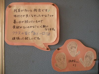 2023年11月10日 09時05分給食室前の掲示物からです。美味しい給食、成長期の中学生時代、栄養をしっかり摂りましょう。調理員の皆さんの喜ぶ顔を想像しながら食べてみてはいかがでしょうか。