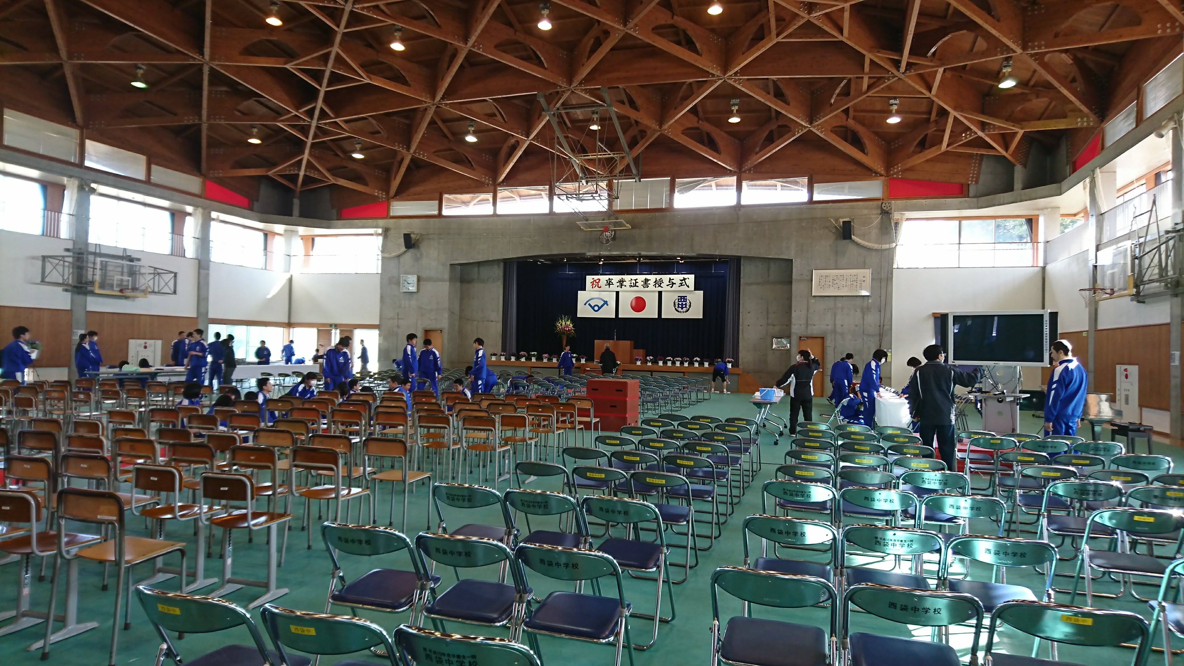 2018年3月12日 15時00分2年生を中心に会場準備が進んでいます。厳粛の中にも感動あふれる式になるに違いありません。3年生の皆さん、お楽しみに!