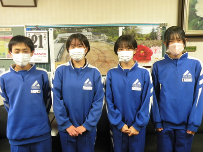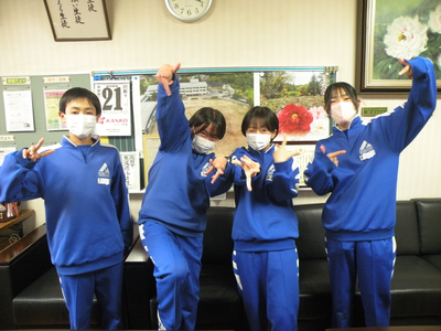 2022年11月18日 17時00分本校から出場する選手が校長室に挨拶に来てくれました。ふざけているように見えますが、みんなとてもいい子たちです。自主的に挨拶に来てくれました。このリラックスした気持ちで大会に臨んでください。私のハイポ~ズで、決めてくれました!!