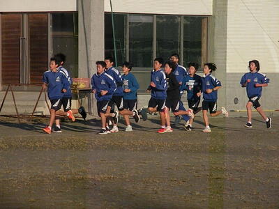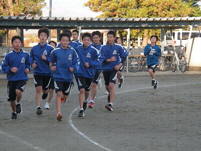 ※写真は、今朝の特設陸上部・駅伝部の練習の様子からです。 |