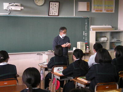 2022年11月22日 11時25分1年3組で社会の授業研究が行われました。アメリカ合衆国の農業と特色について学習することができました。導入時に本物のハンバーグを示し、そこに使われている原材料(小麦・牛肉など)を例にあげながらとても分かりやすい授業でした。さすがベテランの先生です。生徒たちの集中力もすごいものがありました。