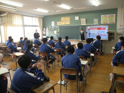 2022年11月22日 12時10分「疑問詩+不定詞をつかった文をつくることができる」ことをねらいに授業が行われました。映像を使ったことにより、とても分かりやすく感じました。みんな意欲的な姿勢で授業に臨んでいました。