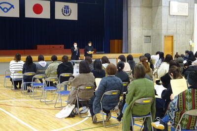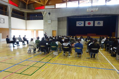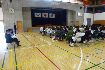 昨日の午後、本校体育館において新入生保護者説明会が開催されました。お忙しい中、多くの保護者の皆様にお集まりいただきまして、ありがとうございました。学校からの説明と併せて、思春期子育て講座も行われました。今後も何か疑問点や不安な点などありましたら、遠慮なく本校に問い合わせください。新入生のご入学を心待ちしています。