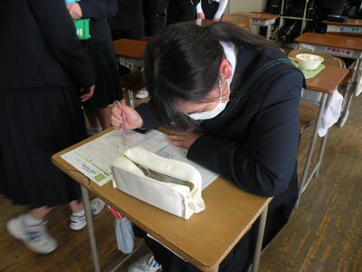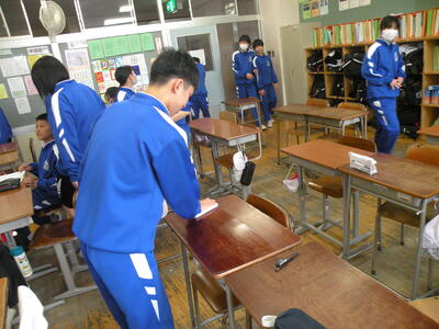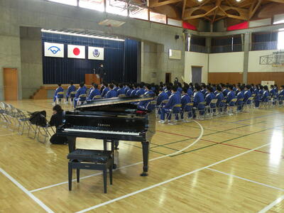 3年生、卒業式の練習が行われました。すばらしい態度と行動でした。そのすばらしさについては、卒業式当日まで楽しみにしていてください。