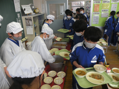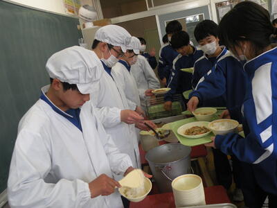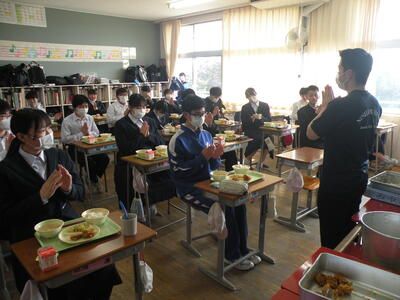 今日のメニューは、3年3組のリクエストメニューでした。詳細につきましては、画像からご想像ください。さすがのメニューでした。とても美味しかったです。今日は3年3組を訪問させていただきました。男子も女子もいい子たちです!!
