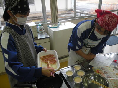 生姜焼きとプリンづくりに夢中です!(1年2組より)