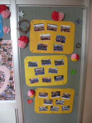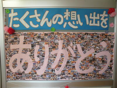保健室前を通ると思わず足が止まり、掲示物に目が集中してしまいました。これは本校の養護教諭が作成したものです。3年生の1年生から今までの写真が貼られています。本当に感動しました。心より感謝いたします。生徒一人ひとりの3年間の成長の跡がよく理解できます。もう卒業ですね・・・