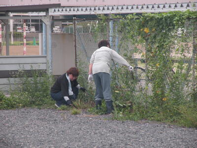 2023年8月11日 08時30分本日、6時15分よりPTA本部役員の皆様と学区内の根本造園様のご協力により、除草作業を行いました。約2時間の作業でしたが、たいへんにきれいになりました。生徒の皆さんも感謝の気持ちを忘れずに、部活動練習や体育の授業に取り組んでください。早朝よりありがとうございました。