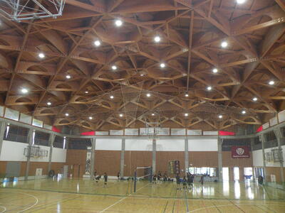 2023年8月24日 11時15分この夏休み期間中に体育館の照明器具が新しくなりました。そうです全てが、ステージ上も含めてが新しくなりました。体育館は以前にも増して明るくなり、部活動練習もたいへんに練習しやすいとの顧問の声を聞いています。昨年は体育館のフロアーが明るくなり、今年は照明器具、新築の体育館のようです。本当にありがとうございました。これからも大切に使わさせていただきます。