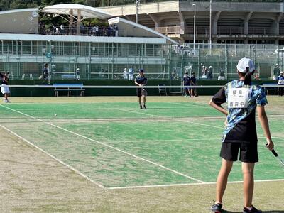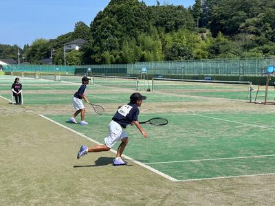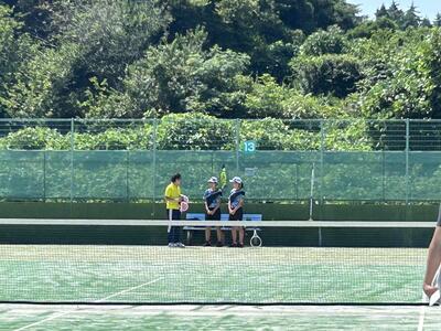 2023年7月24日 11時20分暑い中、2ペアが順調に勝ち進んでいます。水分補給をしながら、ベストな状態で臨んでください。頑張れ、西袋中!
