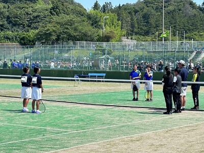 2023年7月24日 13時55分ソフトテニス、まもなく決勝戦です。頑張ってください。なお、もう1ペアはベスト8で敗退しました。が、東北大会への出場権をかけた試合で勝利し、2ペア共に東北大会出場を決めました。おめでとうございます。そして決勝戦、頑張れ!