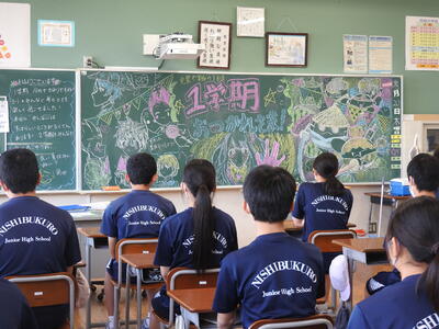 2023年7月20日 15時05分3年1組の終業式の様子です。黒板アートを作成し、みんなで記念写真を撮りました。生徒たちは35日間の別れを惜しむかのように見えます。みんなとてもいい子たちです。1学期、保護者の皆様にはたいへんにお世話になりました。ありがとうございました。