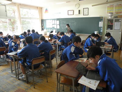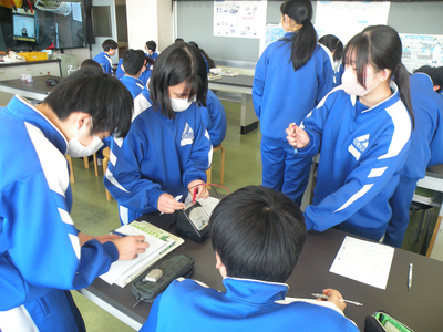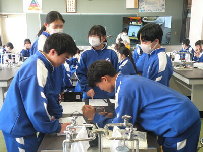 コイルに磁石を近づけての電流の流れについて学習しました。実験の結果をグループできちんとまとめことができました。みんな意欲的な姿勢を感じました。