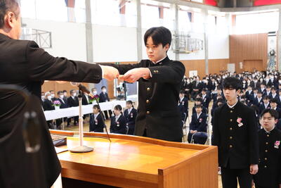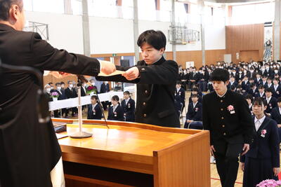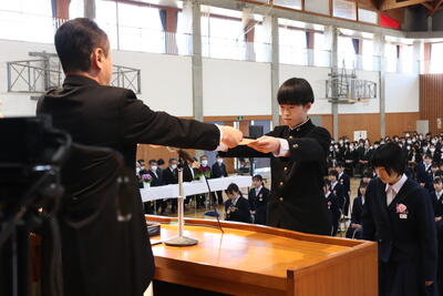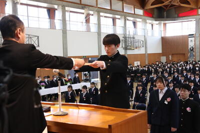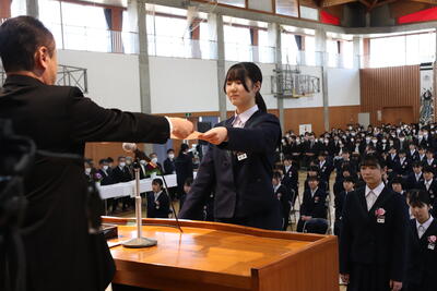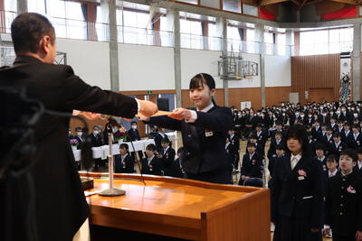 1,2年生への修了証書の授与・校長式辞・学年代表生徒による3学期の反省と新年度に向けての作文発表・校歌の順で行われました。令和6年度も西中は安泰です。生徒たちを見て強く感じました。
