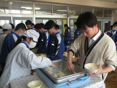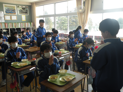 今日のメニューは、麦ごはん・ビーフカレー・ほうれん草のサラダ・みかんゼリー・牛乳でした。給食も残すところあと3回となりました。今日は1年生の教室を訪問しました。このクラスも残りわずかです。2年生ではクラス替えがあります。