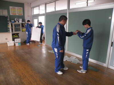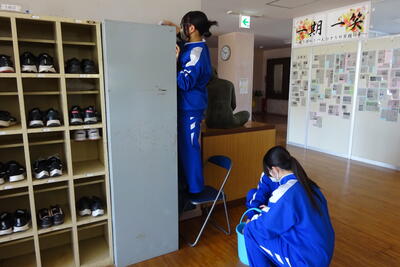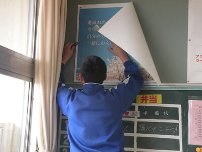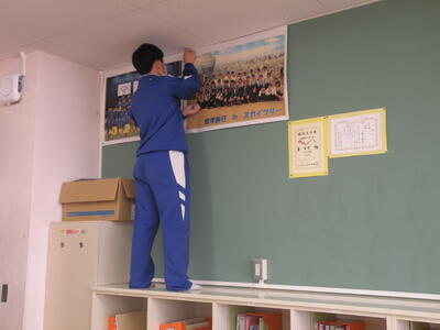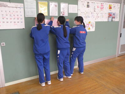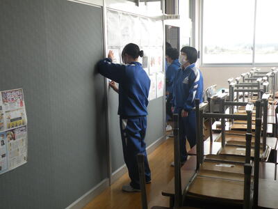 2024年3月5日 11時20分3年生の生徒たちは、各クラスで愛好作業を行っています。掲示物類は剥がし、これから教室内のワックス清掃も行うとのことでした。何となくさびしさを感じます。卒業式は来週の水曜日です・・・