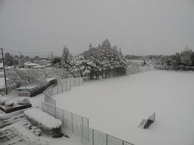 2024年3月6日 13時30分昼休み時間の校庭の様子です。1,2年生が元気に雪遊びを楽しんでいました。本校では日々、体力向上が図られています。